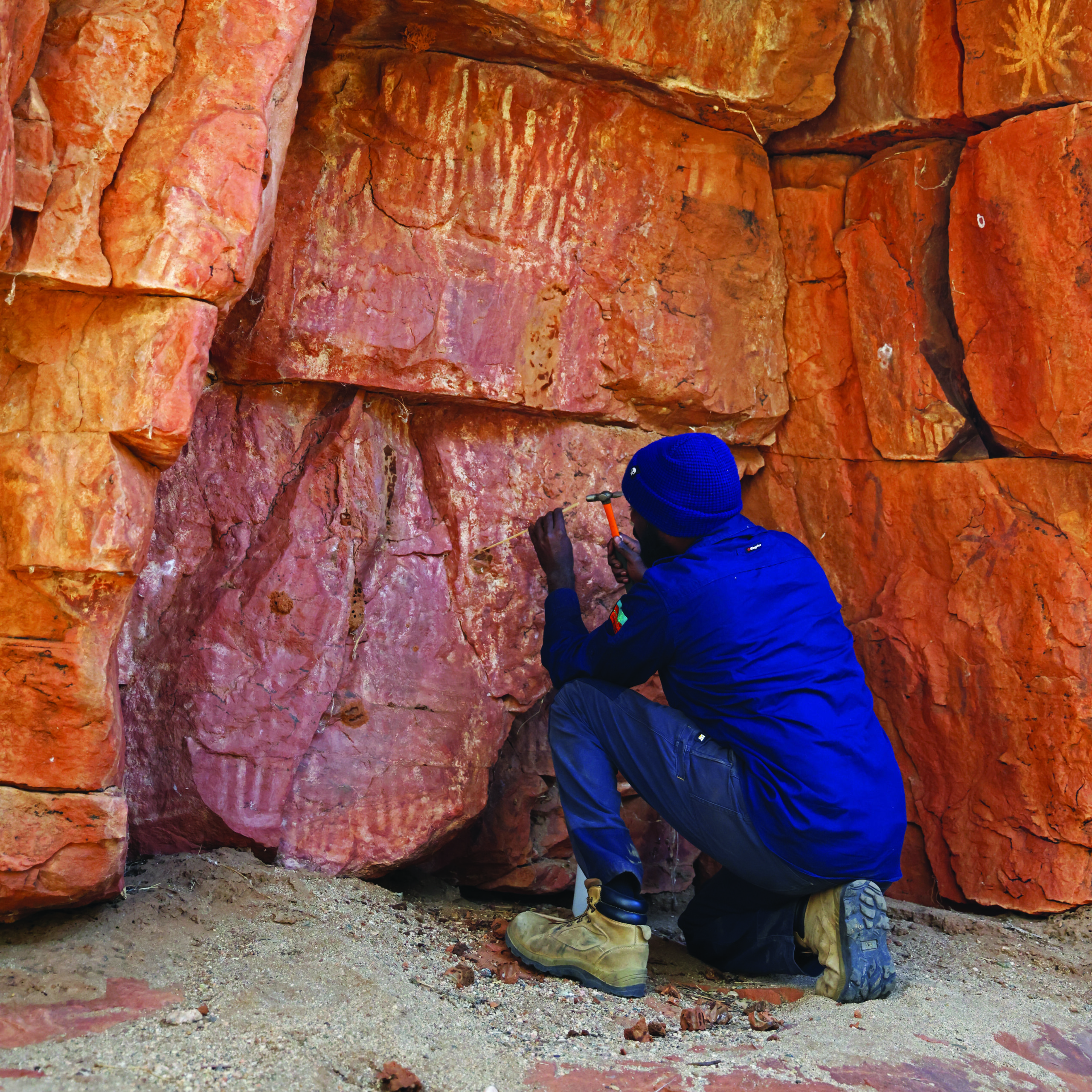 Since Ltyentye Apurte ranger Anton McMillan learnt how to remove swallow nests from rock art from the Kaltukatjara Rangers four years ago he has seized every opportunity to use his skills.